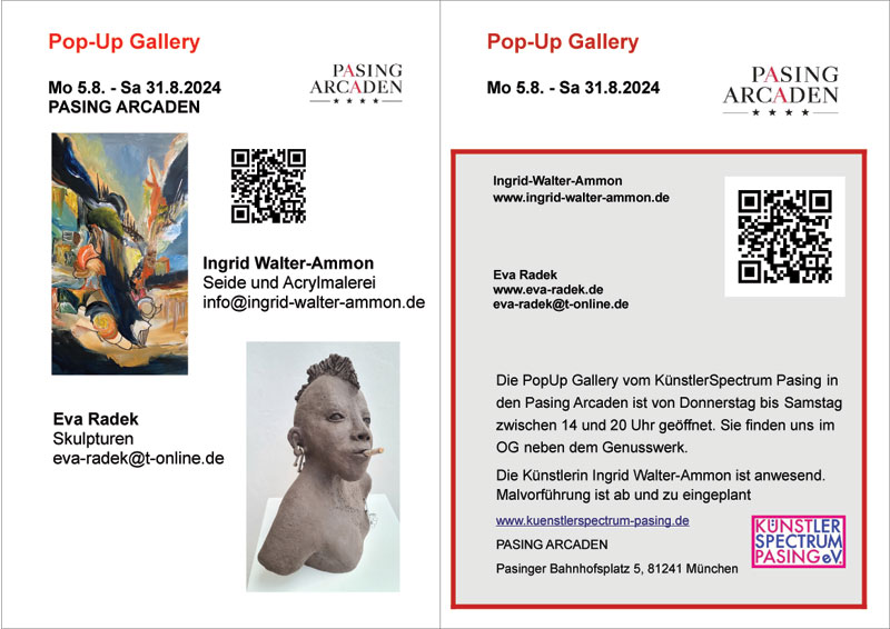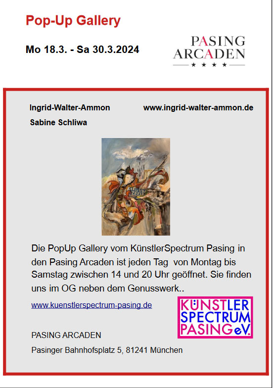 Im gesamten August stelle ich in der Pop-Up-Galerie des Künstlerspektrum Pasing in den Pasinger Arcaden aus.