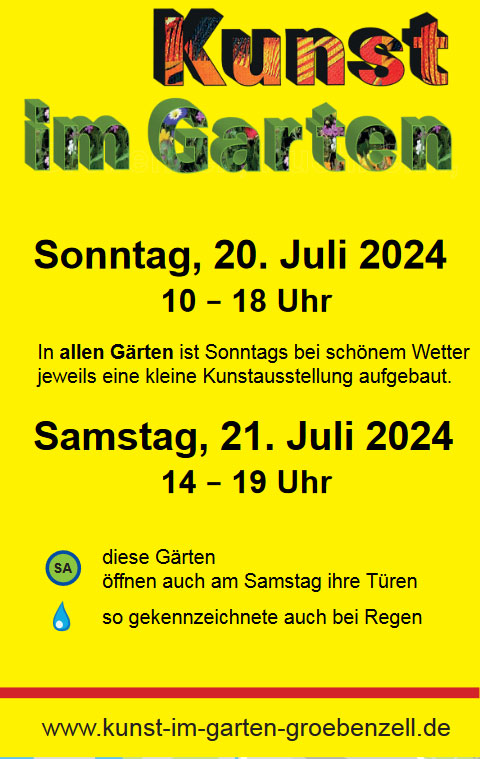 22. Juli von 15 – 20 Uhr, Sonntag den 23. Juli von 11 – 18 Uhr!