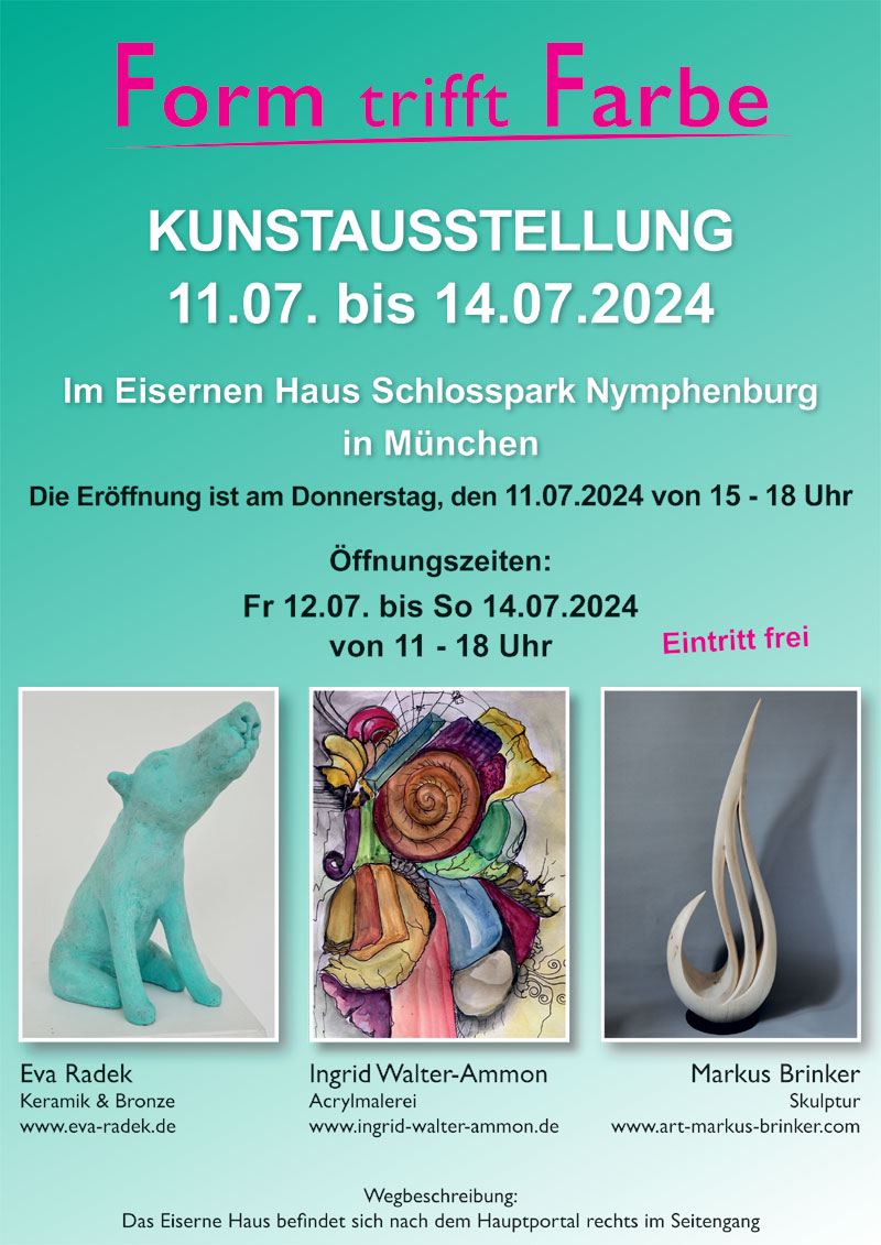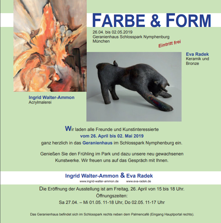 Die geplante Ausstellung mit Eva Radek "Farbe & Form" im Geranienhaus des Schloßpark Nymphenburg ist verschoben auf 2021! Hier noch das Original-Einladungs-PDF