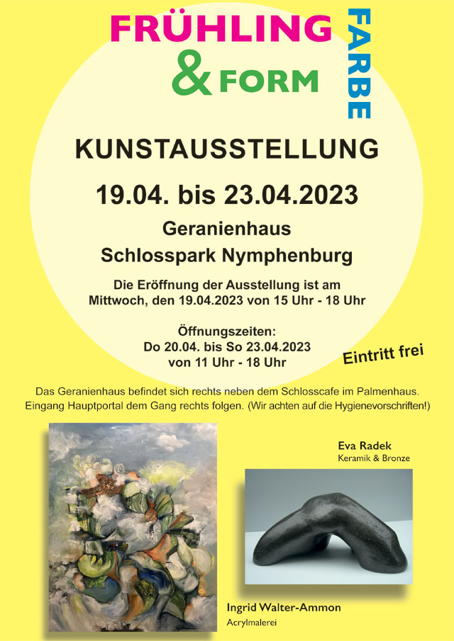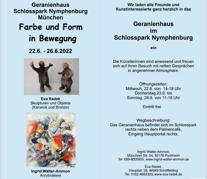 Ausstellung von Ingrid Walter-Ammon und Eva Radek im Geranienhaus im Nymphenburger Schlosspark München